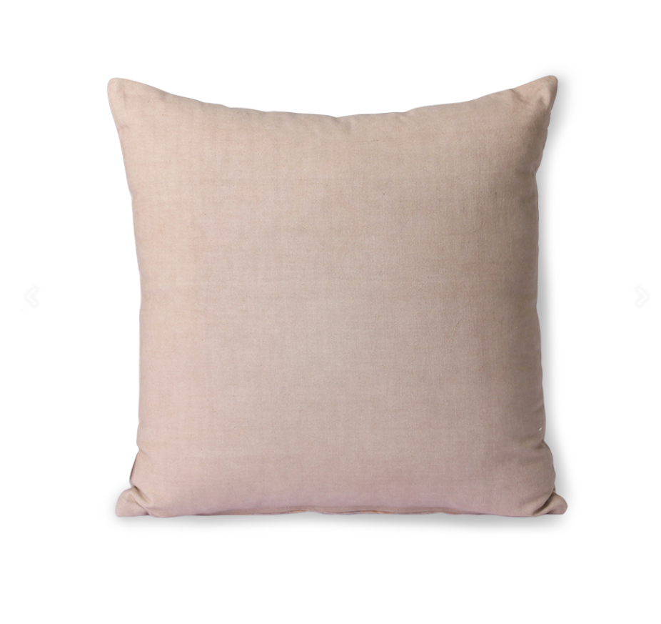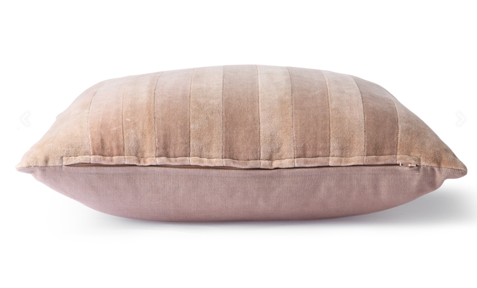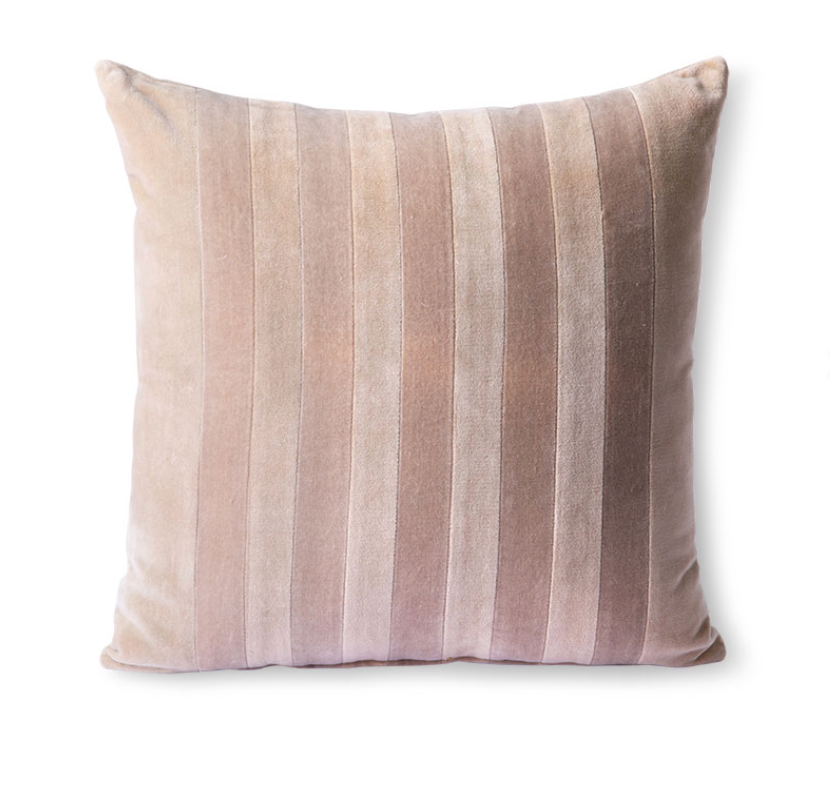 Cuscino 45X45 cm, completo d'imbottitura, in velluto con motivo stripes con retro in cotone tinta unita.