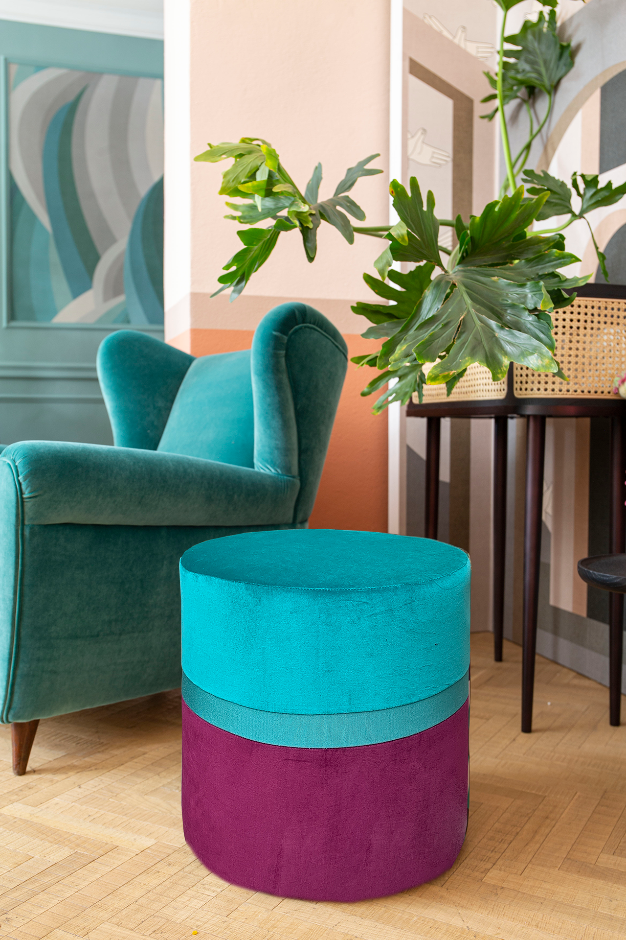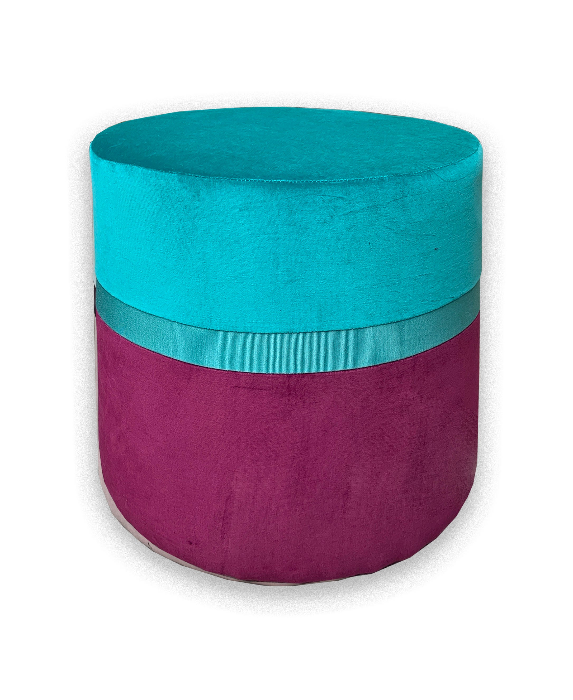 Pouf rotondo in velluto doppio colore. Versatile e adatto sia alla zona living che alla zona notte.