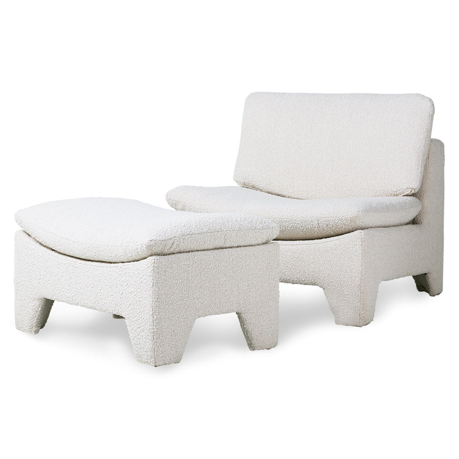 Rilassati in questo comodo divano da salotto retrò color panna effetto bouclè.