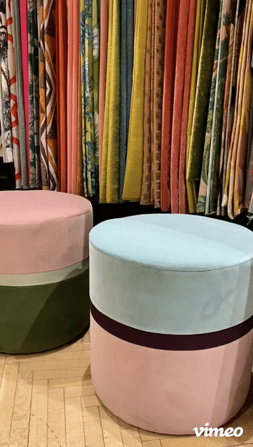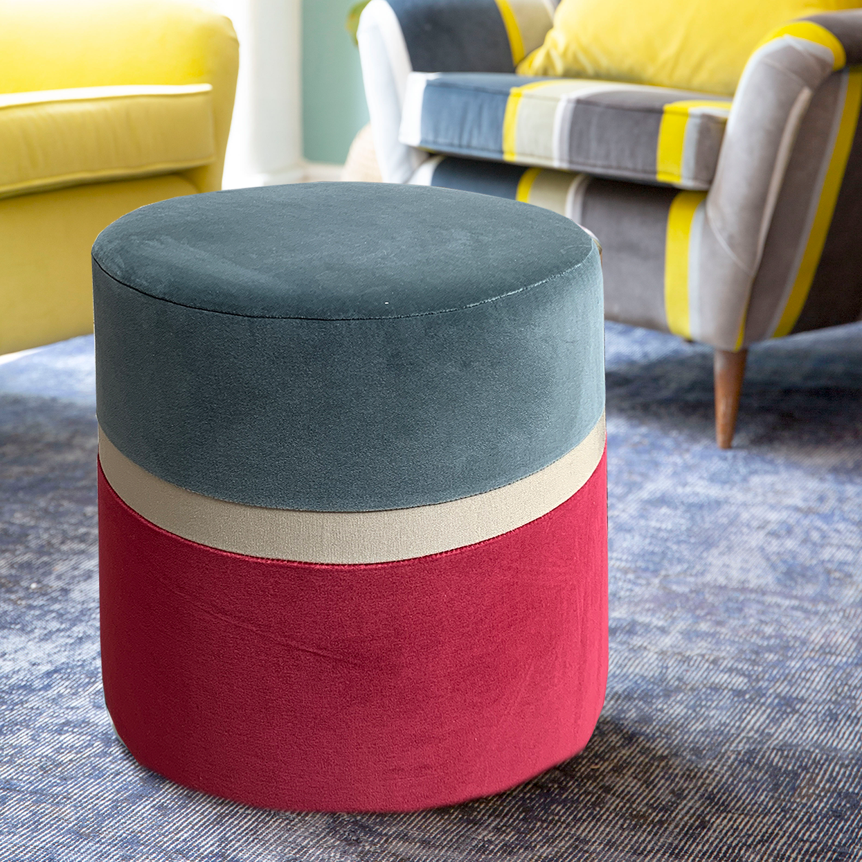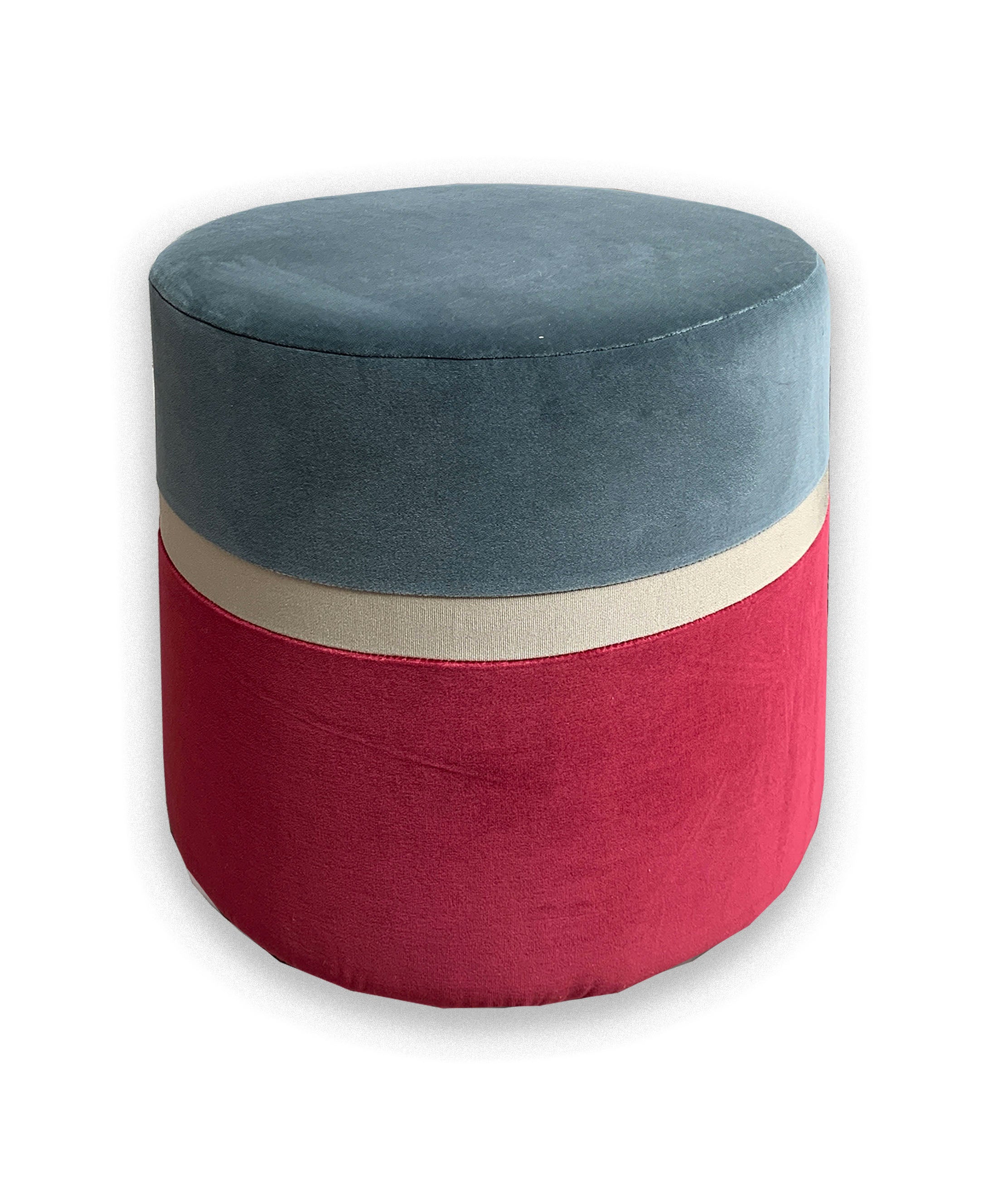 Pouf rotondo in velluto doppio colore. Versatile e adatto sia alla zona living che alla zona notte.