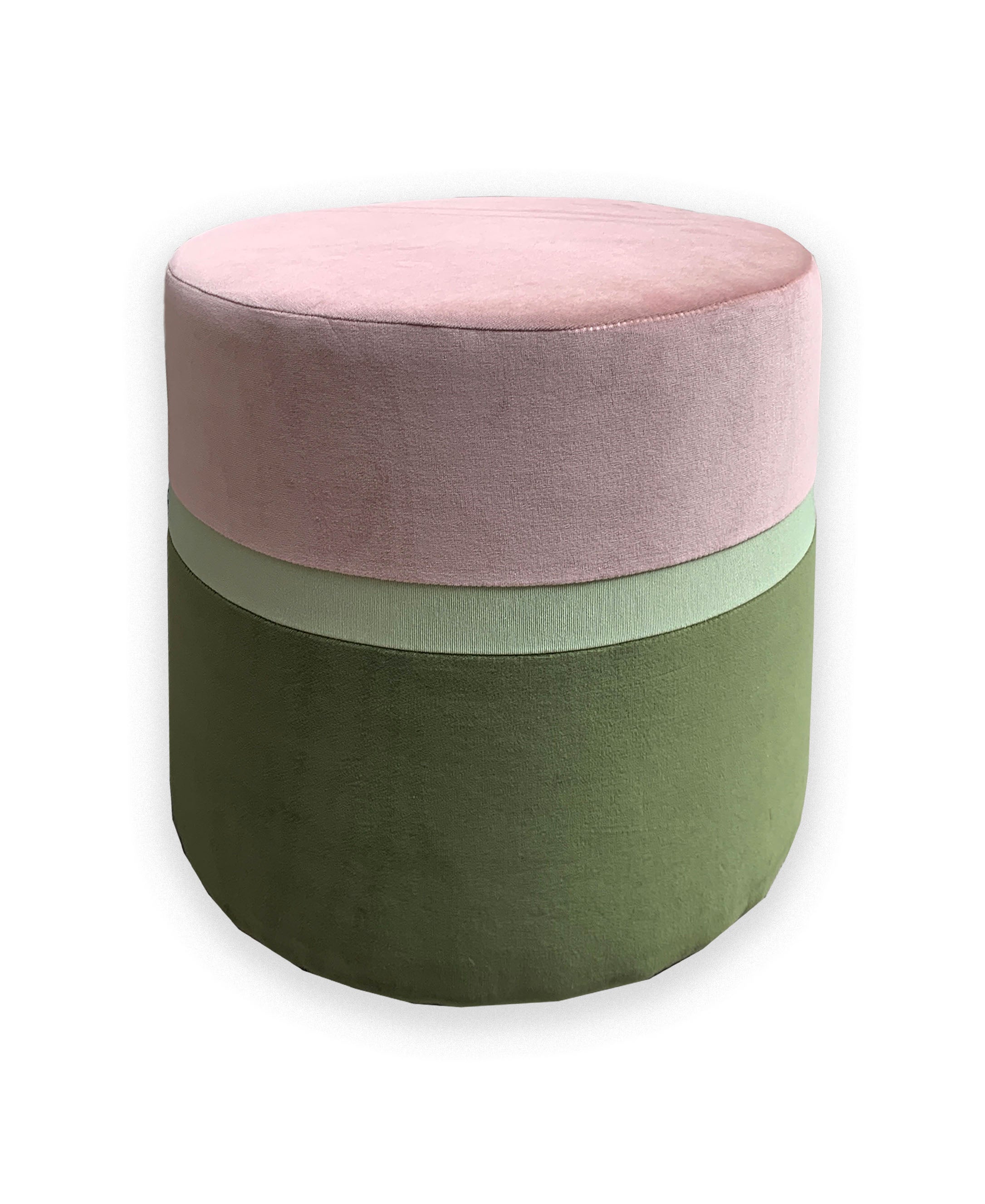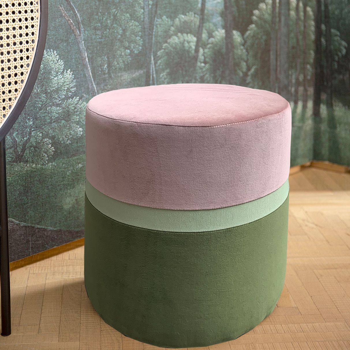 Pouf rotondo in velluto doppio colore. Versatile e adatto sia alla zona living che alla zona notte.