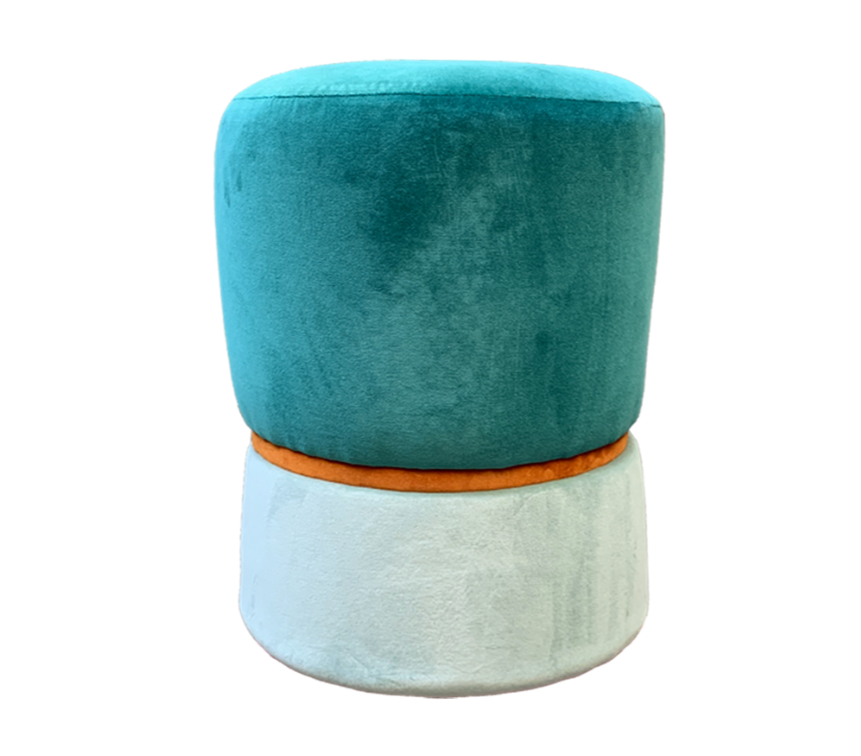 Pouf rotondo in velluto con anello in metallo. Versatile e adatto sia alla zona living che alla zona notte.
