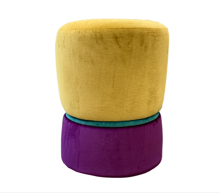 Pouf rotondo in velluto con anello in metallo. Versatile e adatto sia alla zona living che alla zona notte.