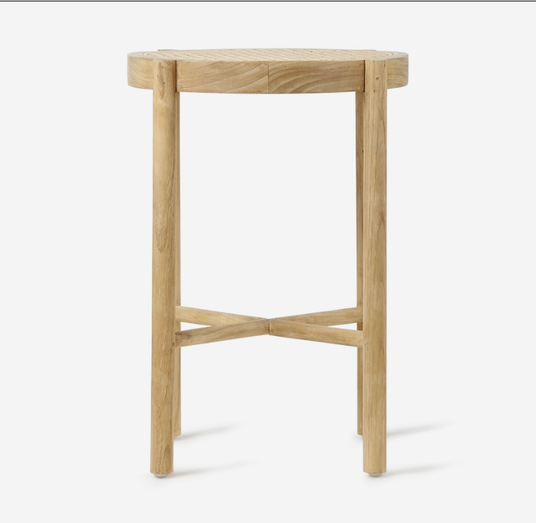 Uno sgabello in tessuto retrò fatto a mano in legno e paglia di vienna.