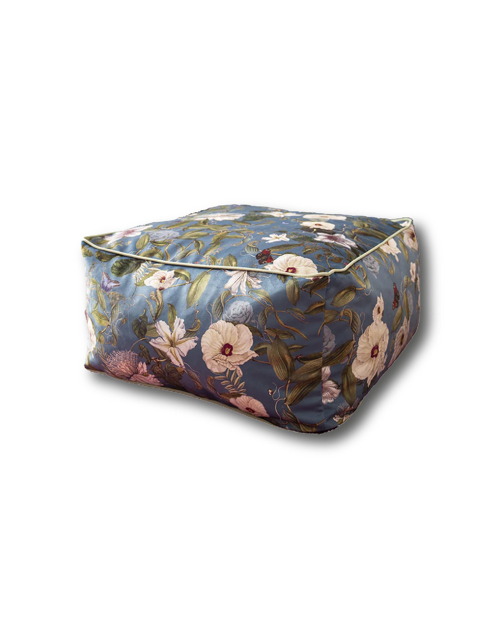 Rectangular pouf in velvet printed with Garden motif designed by Darling Mind Studio. Versatile and suitable for both living and sleeping areas.